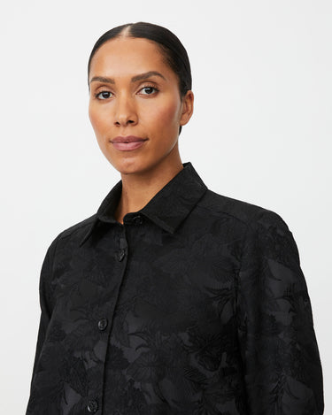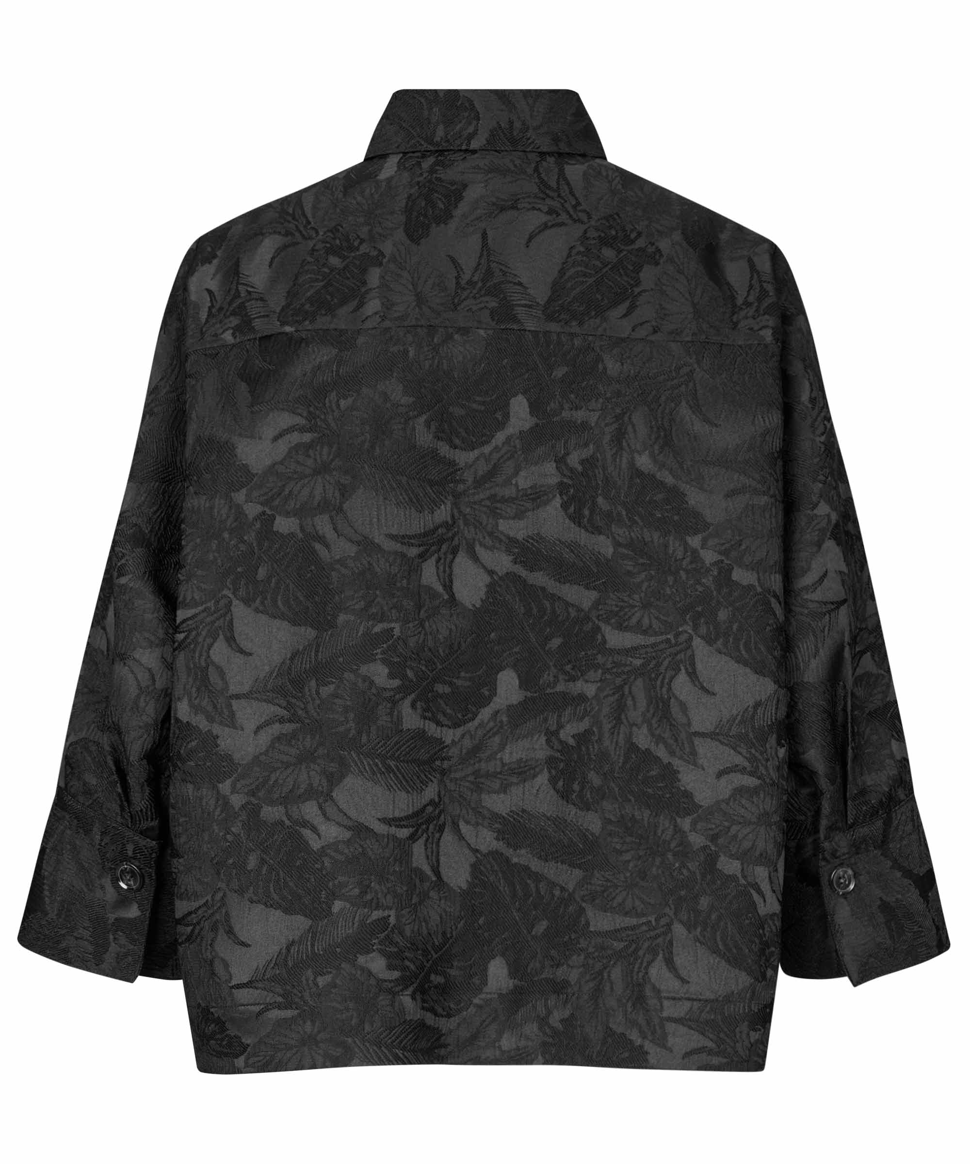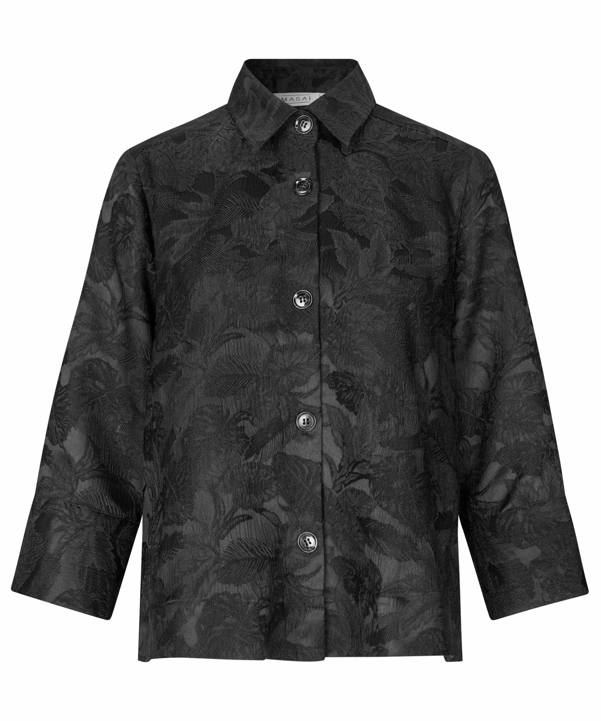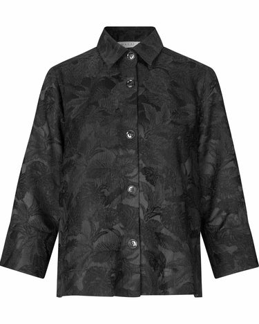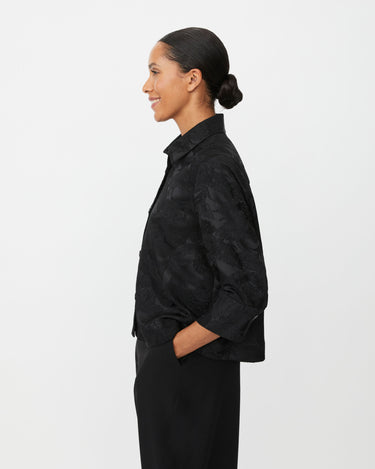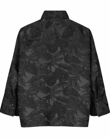 The MaIdakaia Shirt in black combines refined elegance with tactile appeal. This half-sleeve button-down features an intricate leaf embossed print that adds sophisticated texture and visual depth. The structured design layers effortlessly over tees or under blazers, making it an essential piece for transitional dressing. Perfect for fall and winter wardrobes, its versatile black tone pairs seamlessly with any palette while the embossed detailing elevates everyday styling with understated luxury.