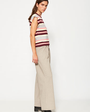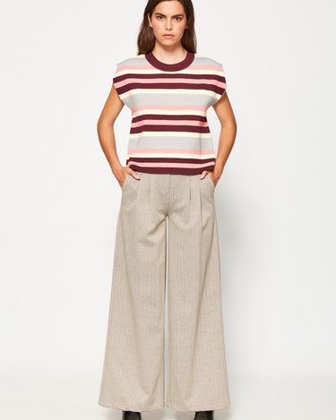 The 37303504 Pant in Sand Cheviot offers a sophisticated wide fit designed for effortless layering during fall and winter. Featuring a distinctive chevron pattern and practical pockets, these pants pair elegantly with leather heeled boots to elevate your seasonal wardrobe. Their full-length cut ensures comfort and style for cooler days, making them a refined choice for your autumn and winter ensembles.