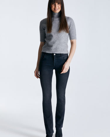 The Judith Jeans deliver timeless style with a refined boot cut silhouette that flatters and elongates the leg. Crafted from a premium cotton and elastane blend, these mid-rise jeans offer comfortable stretch and lasting durability. The classic five-pocket design and regular length provide versatile everyday wear that transitions effortlessly from casual to polished occasions. A wardrobe essential in a vintage black shade.