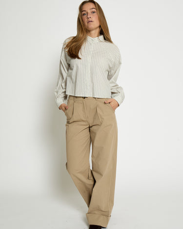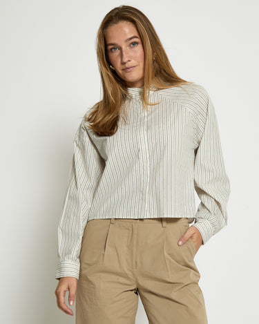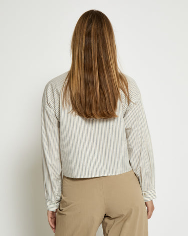 Elevate your fall and winter wardrobe with the PC8503 Kamari Shirt in Whitecap Stripe. Crafted from soft cotton, this long-sleeve button-down features a refined stripe pattern and a cropped length, making it perfect for layering. Its tailored silhouette offers a sophisticated look while providing comfortable warmth for cooler days.
