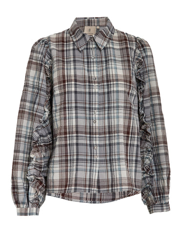 The Luna Shirt in steel grey check is a versatile essential for your fall and winter wardrobe. Crafted from a comfortable cotton blend, this long-sleeve button-down features a refined check pattern that adds subtle visual interest without overwhelming your look. Perfect for layering under sweaters or jackets, it transitions effortlessly from casual to dressed-up occasions. The structured fit and timeless design make it an ideal foundation piece for building sophisticated, season-appropriate outfits.