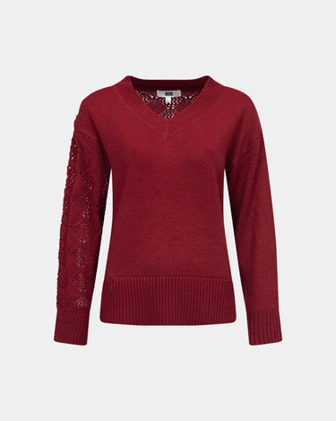 This sophisticated sweater in a soft sand hue features an elegant diamond pointelle pattern, offering delicate texture and refinement. Crafted from acrylic, it provides cozy layering for fall and winter seasons. The flattering V-neckline and long sleeves enhance its timeless silhouette, making it a versatile piece for polished, seasonally appropriate looks.