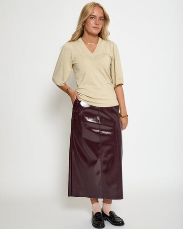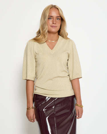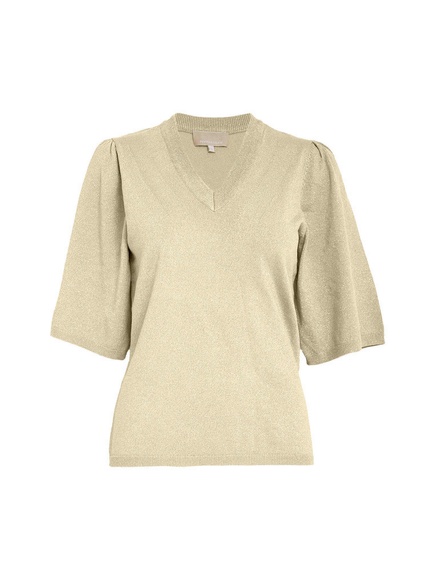 PC8442 GLENDA REMI SHORT SLEEVE KNIT - FOG SAND METALLIC