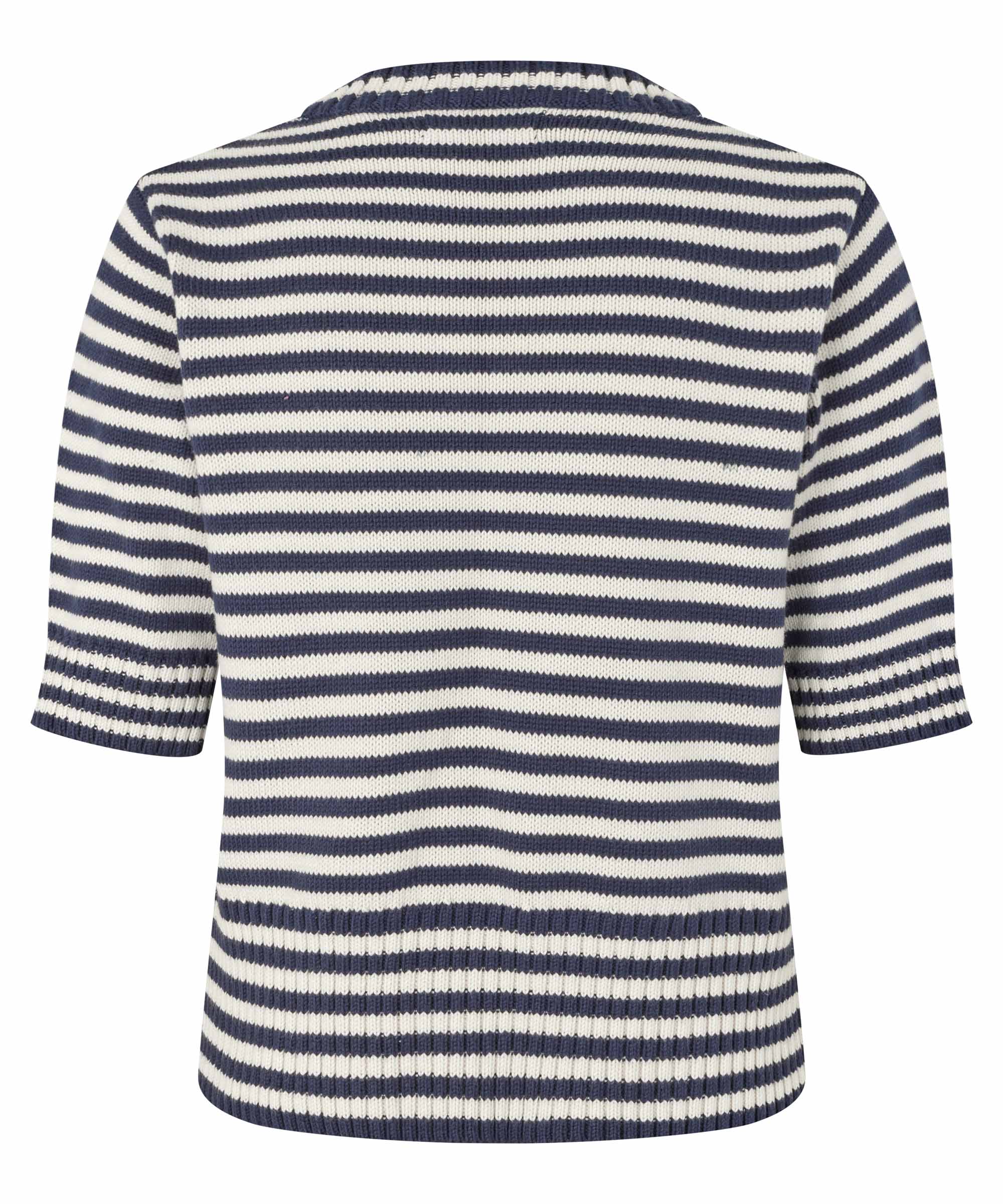 Effortless layering piece crafted from a breathable cotton-polyester blend. This short-sleeve striped top transitions seamlessly from season to season, perfect for spring styling. Pair it with jeans for casual weekday wear or layer under a blazer for polished sophistication. The versatile design works equally well with a skirt for a refined look.