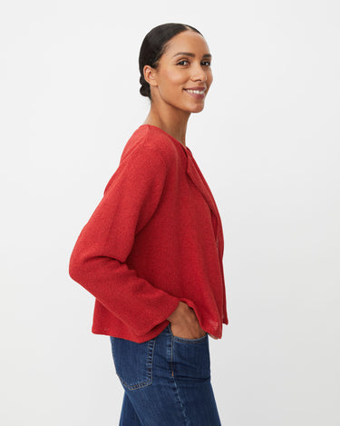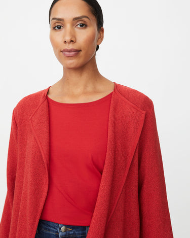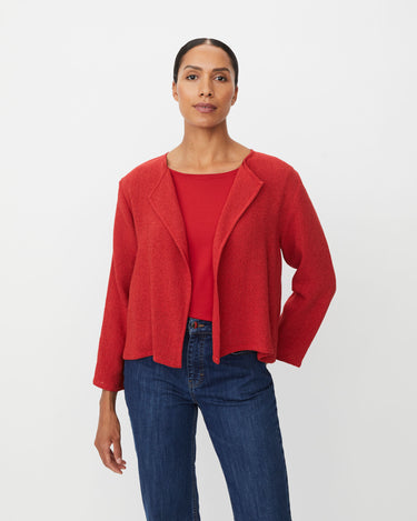 La veste MaJulitta couleur sauge écarlate est une pièce polyvalente et essentielle, confectionnée dans un luxueux mélange de coton et de viscose. Sa silhouette fluide et drapée se marie à merveille avec les robes et les hauts, ce qui la rend idéale pour les tenues d'automne et d'hiver. Ses manches longues et sa coupe raffinée lui confèrent une élégance naturelle, tandis que sa teinte écarlate vibrante apporte une touche de couleur éclatante à votre garde-robe de saison. Parfaite pour superposer les vêtements avec aisance et élégance.