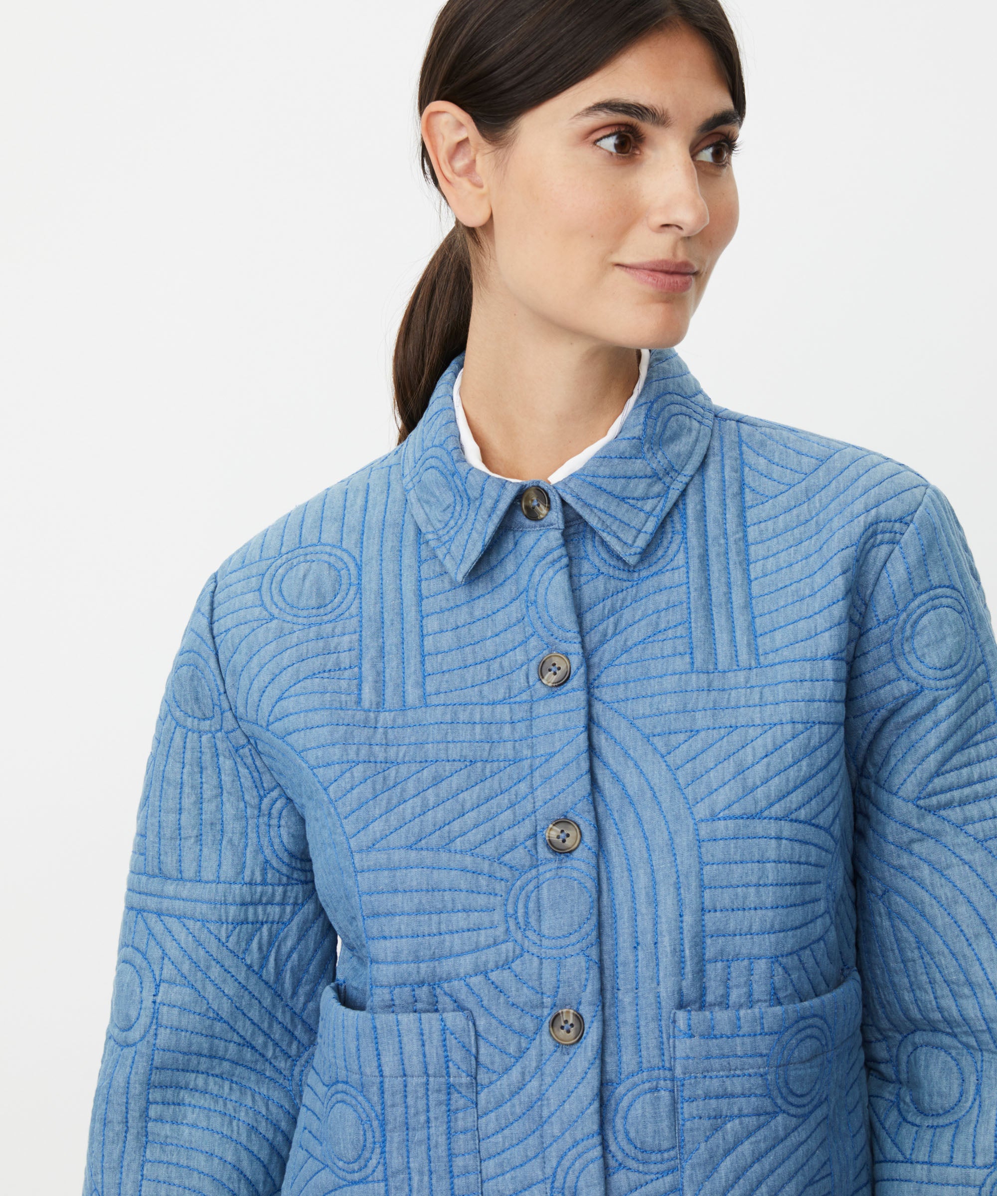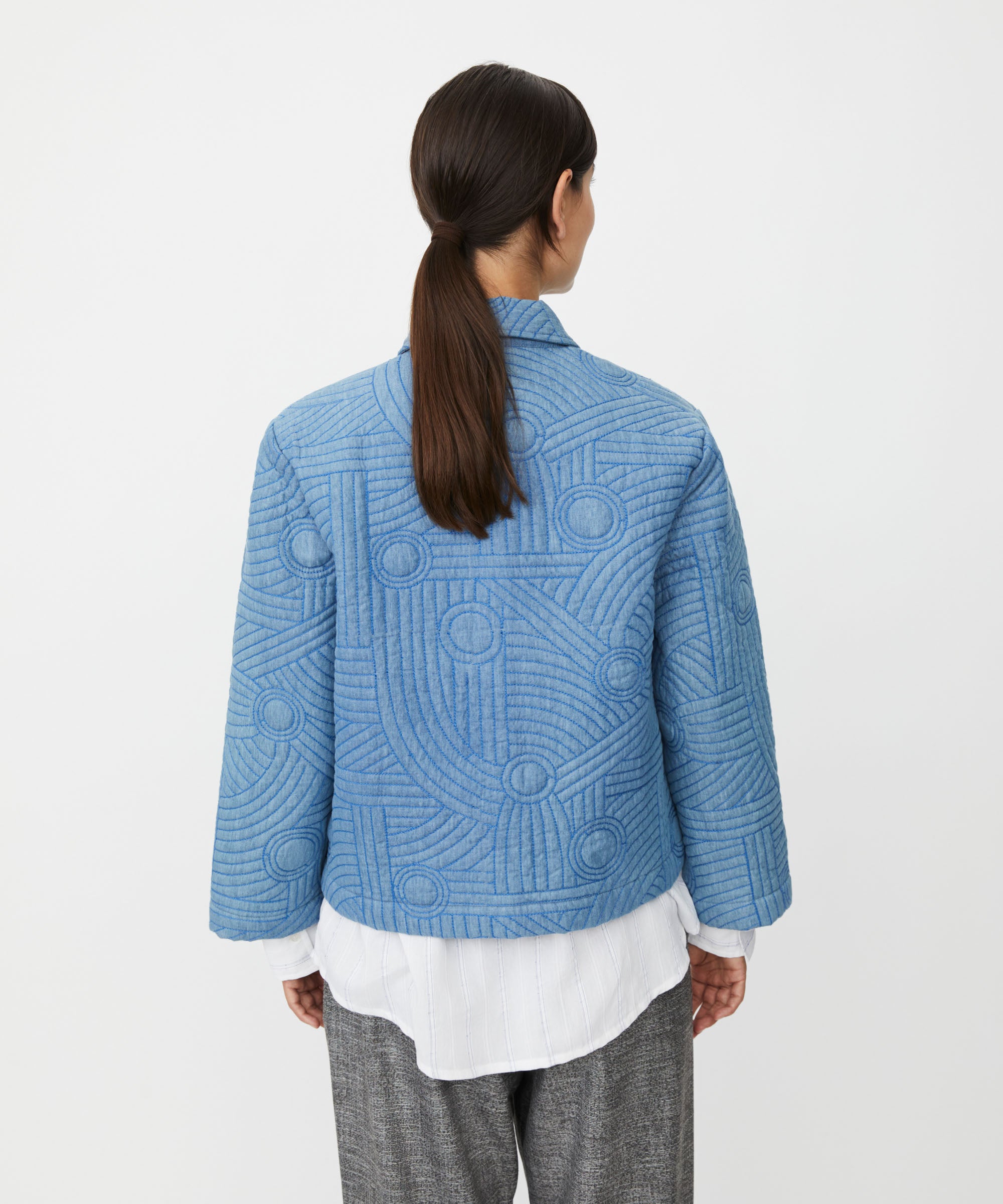 The Majalindra Jacket is a refined layering piece designed for the transitional pre-spring season. Crafted from 100% cotton in colour basic denim, this long-sleeve button-down jacket features practical front pockets and an intricate threaded pattern that adds subtle visual interest. Its structured silhouette and sophisticated detailing make it an effortless addition to any wardrobe, offering versatility for both casual and polished styling.