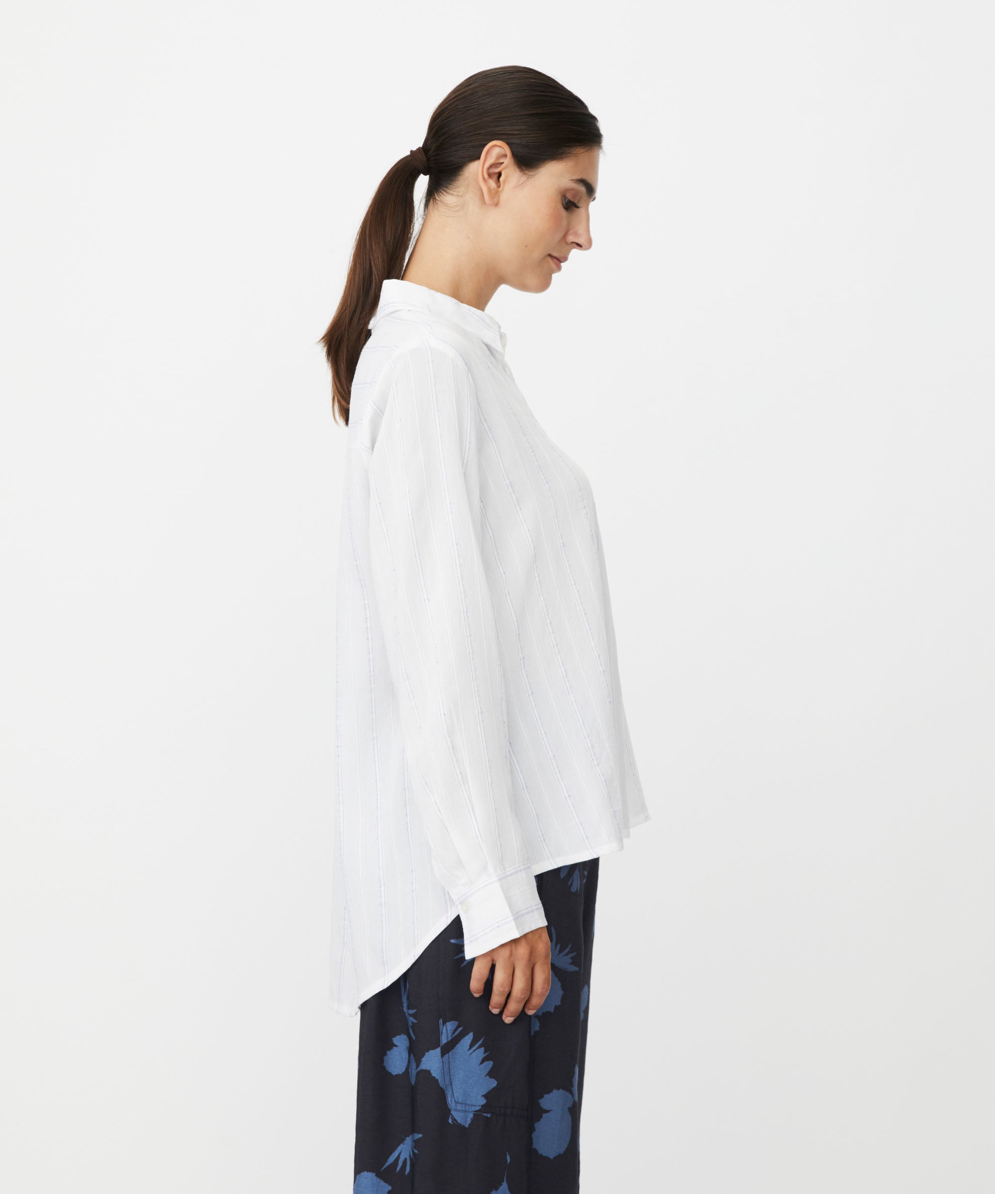 The MaImma Shirt effortlessly bridges seasons with its refined long-sleeve silhouette and understated stripe detailing. Crafted from a luxuriously soft viscose blend, this versatile button-down transitions seamlessly from winter into spring. Style it tucked into tailored pants for polished sophistication, or pair with a flowing skirt for an elegant, relaxed aesthetic. A wardrobe essential that adapts to your mood and occasion.