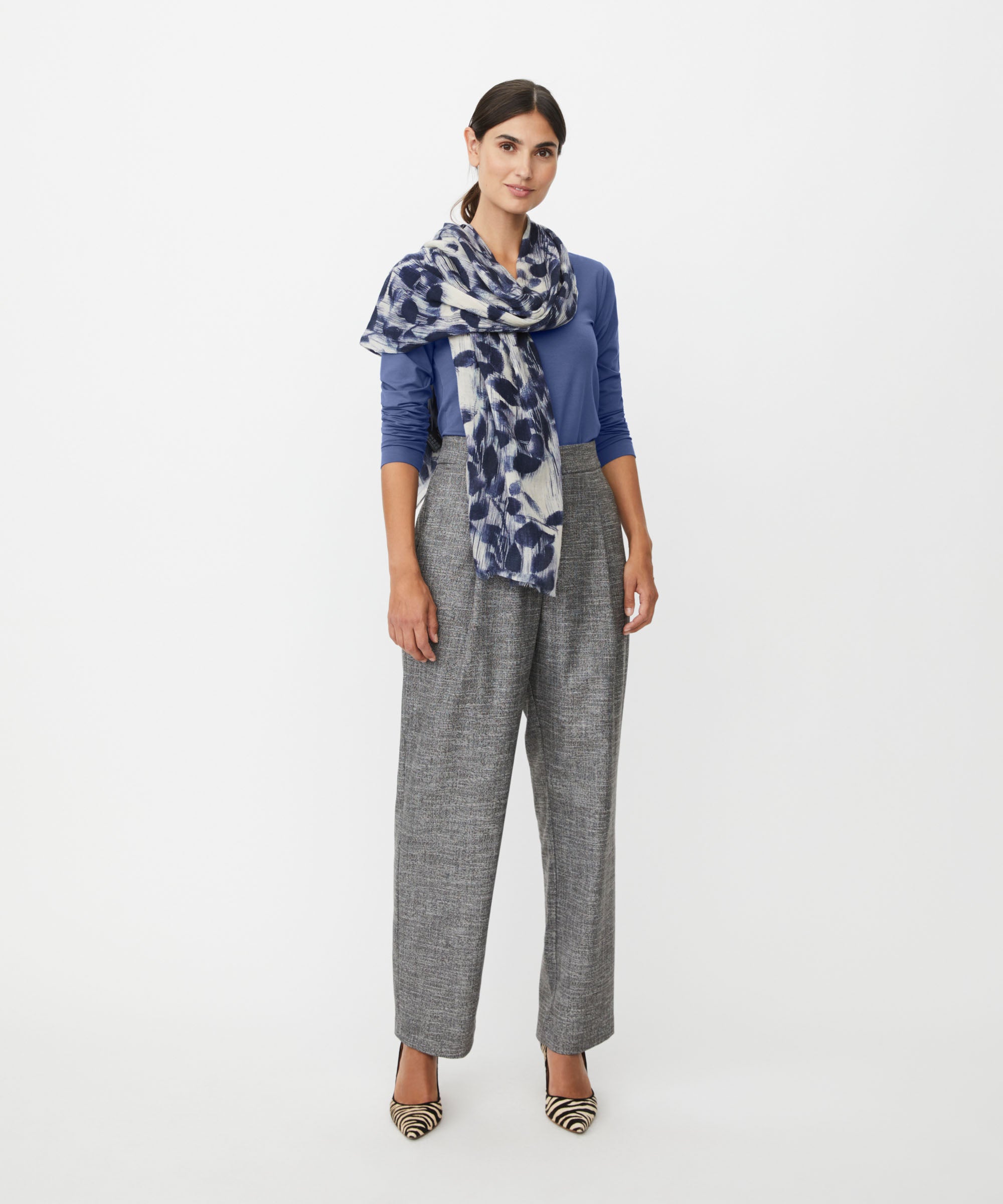 Embrace the season's gentle shift with this refined wool scarf, thoughtfully designed for the transition into pre-spring. Featuring an elegant floral leaf motif, it effortlessly layers over your favorite pieces while providing essential warmth during unpredictable weather. The sophisticated fog tone complements any wardrobe, making it the perfect accessory for those in-between months when style meets practicality.