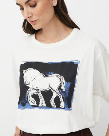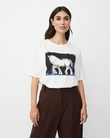 Crafted from 100% cotton, the 1011426 MaDoreann Top offers a refined layering option perfect for fall and winter. Its elegant horse print adds a subtle yet distinctive detail, making it an ideal piece to elevate your seasonal wardrobe with sophistication and comfort.