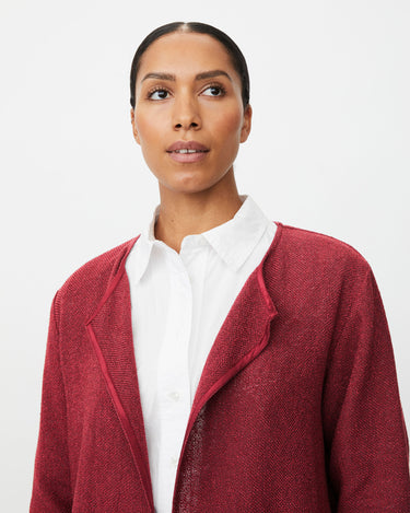 The MaJulitta Jacket in Tawny Port is a sophisticated layering essential for the cooler months. Crafted from a comfortable cotton blend, this long-sleeved jacket features classic lapels and a semi-structured silhouette that effortlessly elevates any ensemble. The rich, holiday-bright tawny port hue adds warmth and depth to fall and winter wardrobes, making it an ideal piece for seasonal transitions and festive occasions. Versatile enough to layer over basics or dress up with tailored pieces, this jacket combines timeless style with practical comfort.