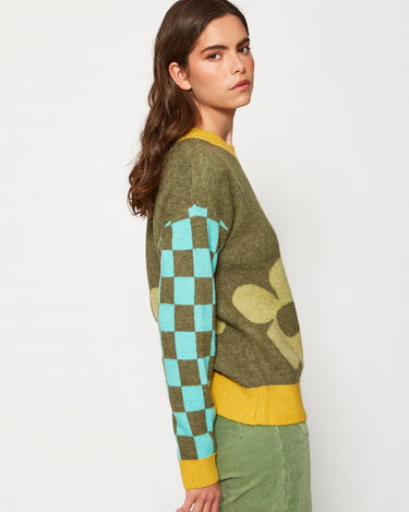Ce pull à manches longues d'un ton kaki sophistiqué arbore un motif floral subtil qui ajoute une touche de couleur raffinée à votre garde-robe. Idéal à superposer, il offre chaleur et style en automne et en hiver, un choix élégant pour les journées plus fraîches.