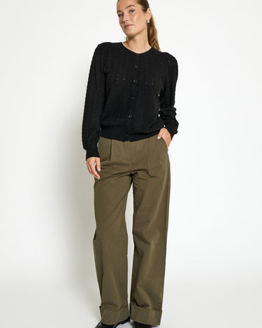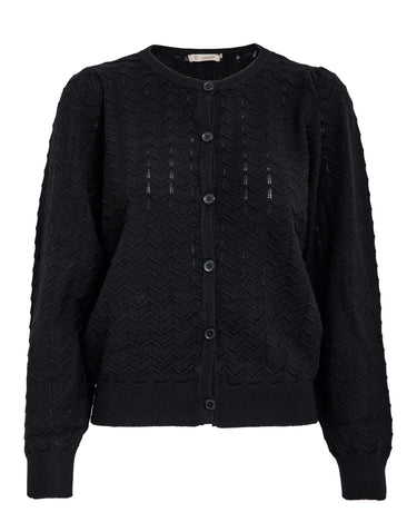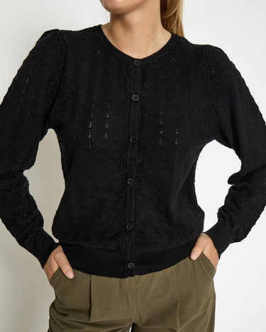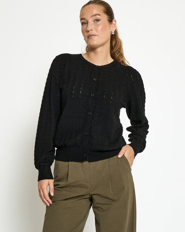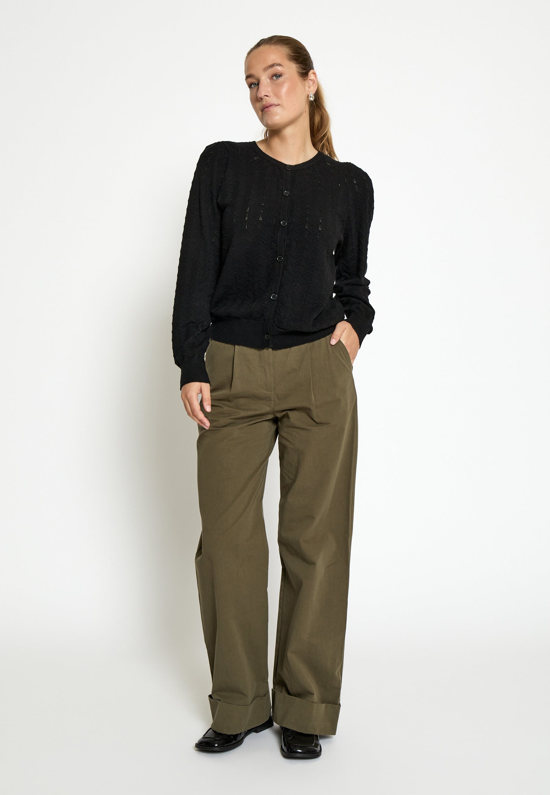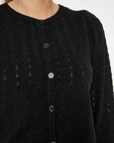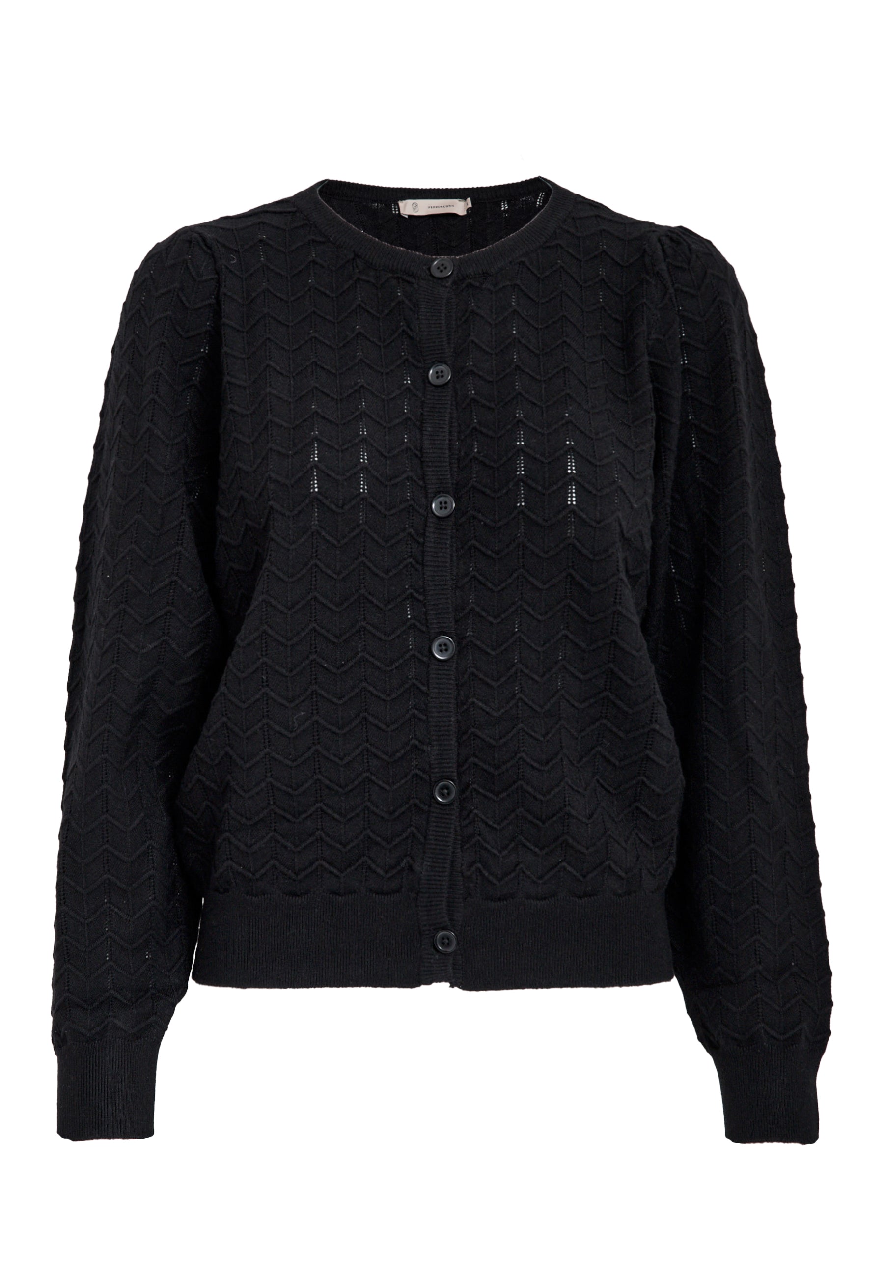 Sublimez votre garde-robe d'automne et d'hiver avec le cardigan Rosy noir PC8603. Confectionné en viscose douce, ce modèle à manches longues présente une texture chevron raffinée qui lui confère une profondeur subtile et un charme classique. Conçu comme une chemise boutonnée, il se superpose facilement à vos essentiels, vous offrant chaleur et sophistication intemporelle tout au long de la saison.