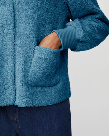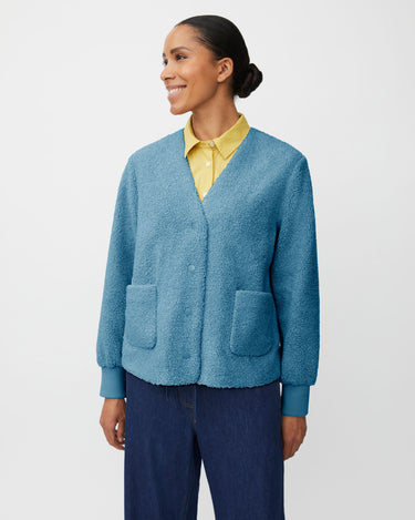 This MaJunte Jacket in Proven Blue offers a sophisticated blend of warmth and style, perfect for fall and winter layering. Crafted from a soft material, it features convenient front pockets and cuff sleeves for added comfort and functionality. The button-up design enhances its refined look while making it easy to wear over your favorite outfits during cooler days.