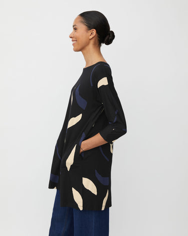 This navy blazer tunic is crafted from soft, lightweight viscose, making it perfect for layering during fall and winter transition seasons. Its refined print adds subtle elegance to your wardrobe, while the comfortable fabric ensures ease of wear throughout the day. Ideal for sophisticated styling, this blazer seamlessly balances warmth and breathability for adaptable seasonal wear.