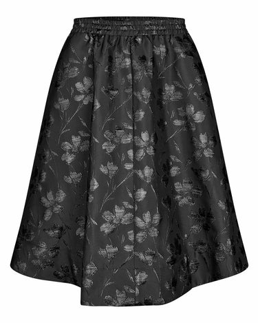 Elevate your seasonal wardrobe with this refined midi skirt, designed for effortless sophistication. Featuring a subtle embroidered floral print that adds understated elegance, it pairs beautifully with layered pieces for fall and winter styling. The comfortable elastic waistband ensures all-day ease, making it perfect for holiday gatherings and everyday wear. A versatile essential that transitions seamlessly from casual to dressy occasions.