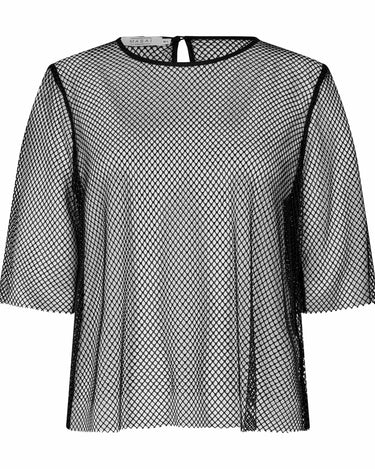 The MaByreli Top in black is a versatile layering essential that transitions seamlessly from autumn through winter. Crafted with delicate mesh detailing, this short-sleeve piece adds dimension and visual interest to any ensemble. Perfect for layering under jackets or wearing solo at evening gatherings, it combines understated elegance with contemporary design. The breathable mesh construction ensures comfort while maintaining a refined silhouette, making it an indispensable addition to your seasonal wardrobe.